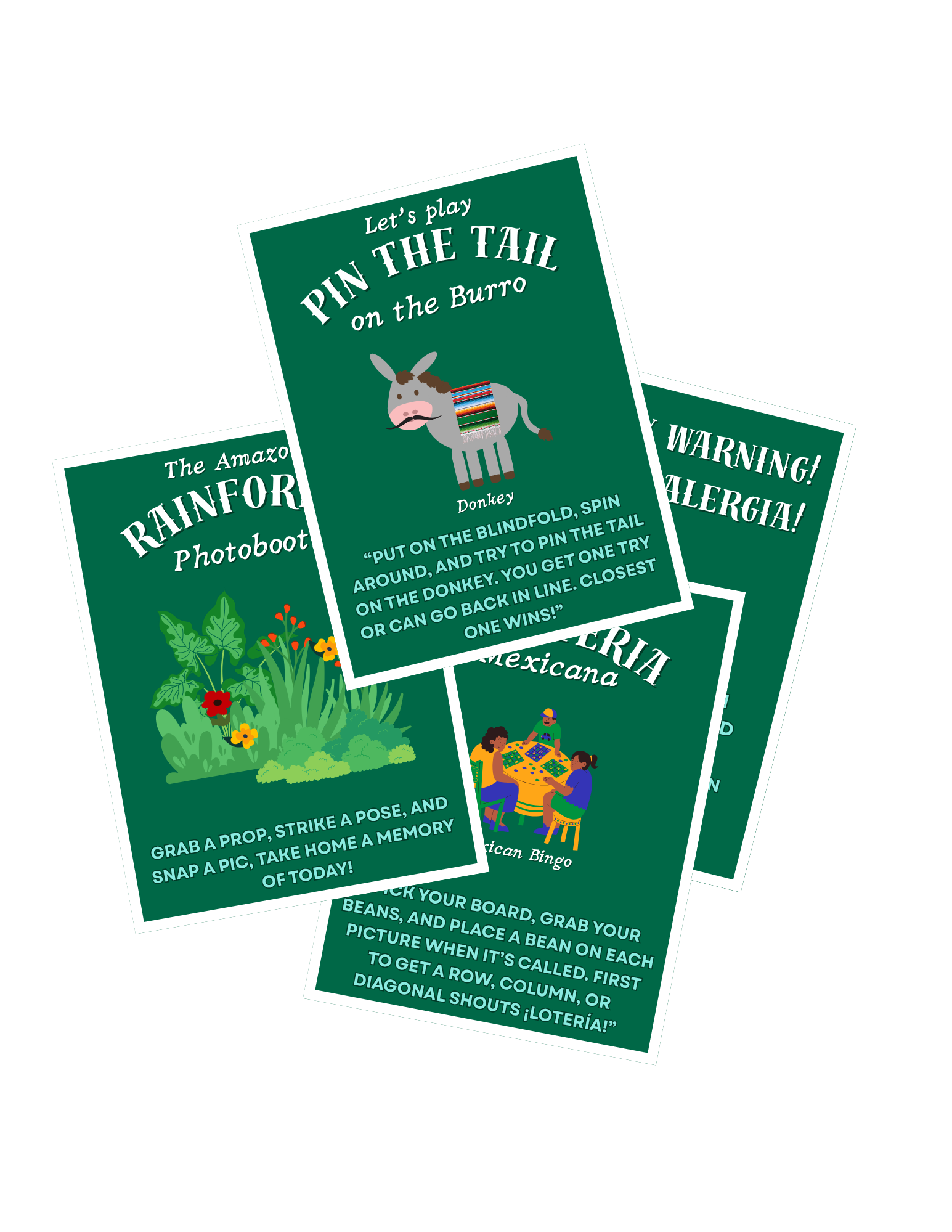 Planned and designed hands-on activities for all ages. Customized the classic loteria game to make it family friendly. Handmade an Amazon rainforest photo booth, and assisted in creating pin the tail on the burro